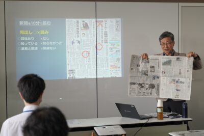 2日間の研修では新潟日報社の講師・木村様をお迎えし、前半は講義形式、後半は実技中心の構成で、豊富な新聞記者経験をもとにビジネスシーンで役立つ雑談力や話を引き出すコミュニケーション力、相手に伝わる文章の書き方の向上などを学びました。