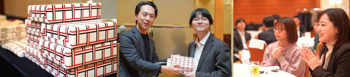 忘年会の目玉であるプレゼント抽選会では、ランダムで選ばれた番号で様々な景品が参加者全員にプレゼントされました。