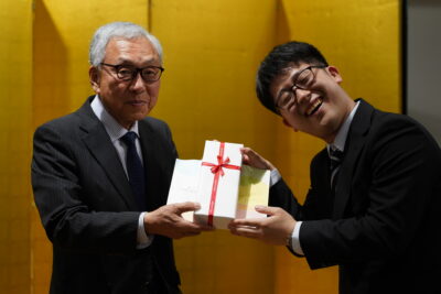 歓迎会の途中、ミルフィーユ、マドレーヌ、ゼリー、米菓などの景品が参加者全員にプレゼントされました。